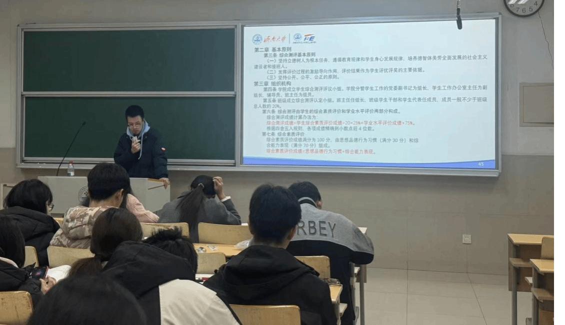 在国家助学金政策板块,宣讲明确了本科阶段三档助学金的资助标准与申报细节,强调对特殊困难学生等重点群体的保障力度,同时给出同学们注意事项。在综合测评板块,则重点解读了综合测评成绩和学业水平成绩与励志奖学金申请的关联。