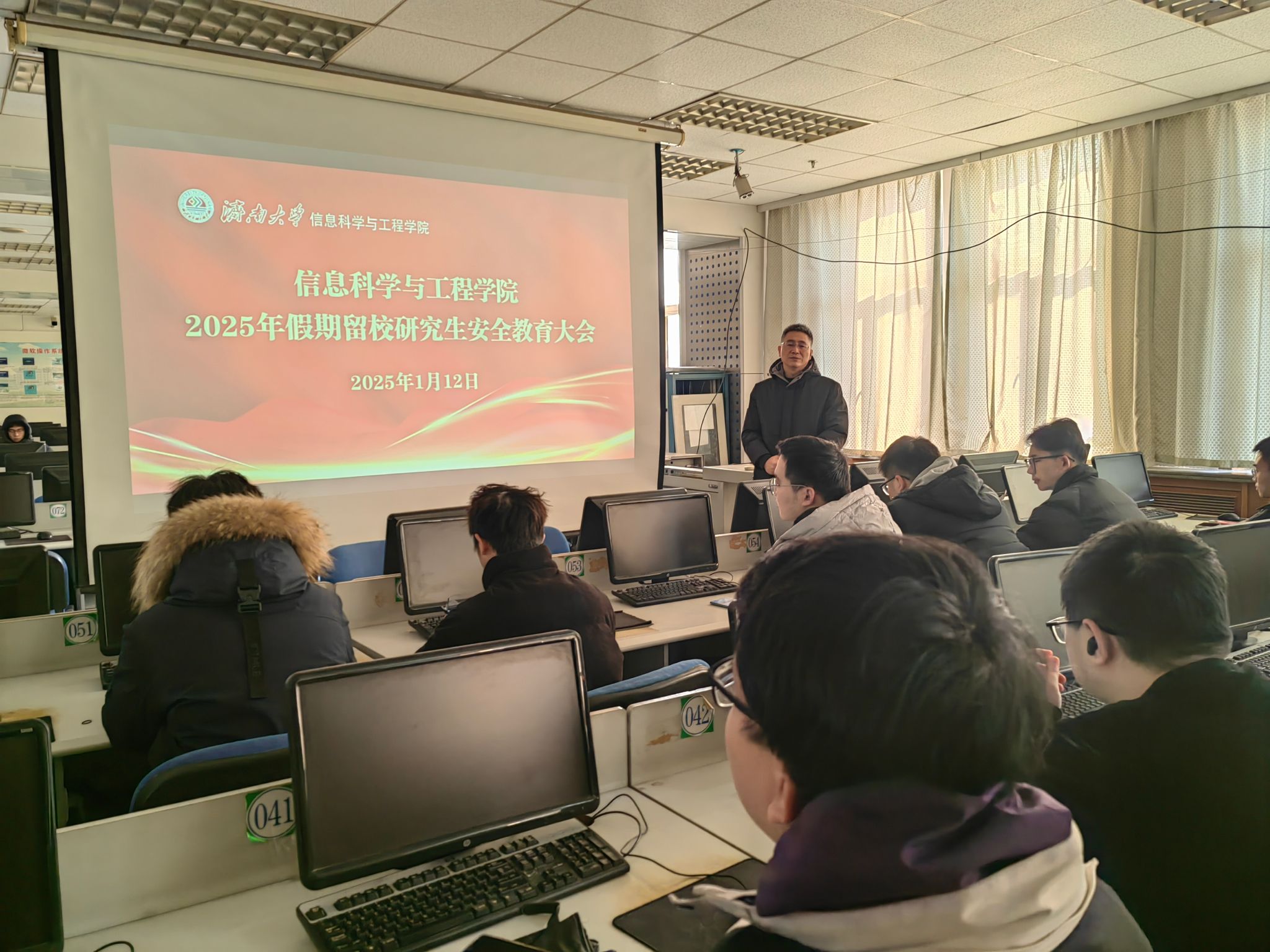 召开2025年寒假留校研究生安全教育大会。学院领导班子成员出席会议,实验室中心主任孙传伟、研究生辅导员付颖颖及235名假期留校研究生参加会议。