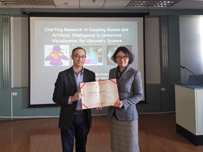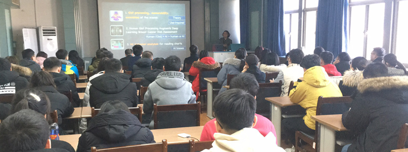 作了题为“Charting Research in Coupling Human and Artificial Intelligence for Discovery Science”的学术报告。报告会由冯志全教授主持,陈贞翔院长、韩士元副院长、相关教师及学院100多位研究生到场聆听。报告会前,陈贞翔院长为陈健博士颁发了济南大学客座教授聘任证书。报告中,陈博士介绍了其团队在可视化和人工智能领域取得的最新研究成果,其中包括基于视觉科学设计可视化方面、视觉可视化在实现人类智能和机器智能结合方面以及机器智能在读可视化图形时的行为和偏见等方面的最新发现。陈博士语言生动有趣,深入浅出、内容丰富,让广大师生收益匪浅。