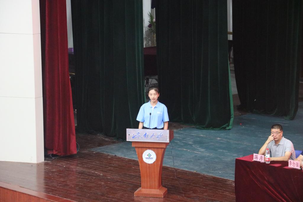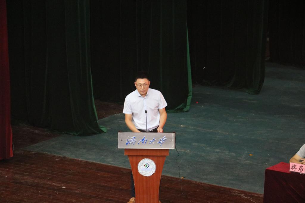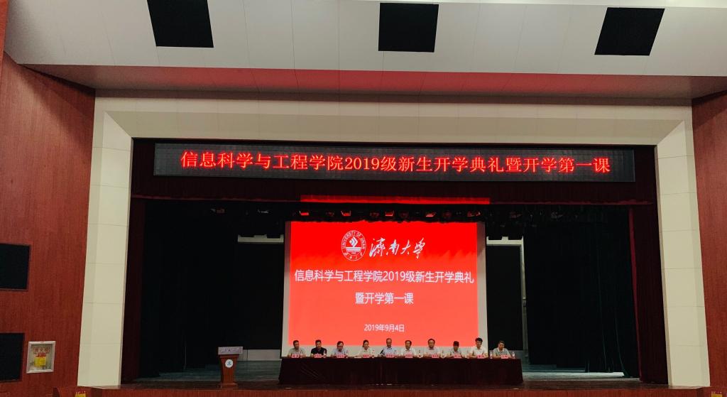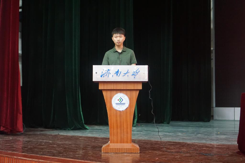 教师的风采。他指出,由一名信息学院的新生,真正成长为“弘毅博学、求真至善”的“济大人”,是需要大家用未来四年,甚至更长时间来努力完成的。并对新生提出四点建议,一是志存高远,树立目标;二是脚踏实地,认真做好每一件事;三是积极面对各种挫折;四是心存感恩,走好未来的人生道路。2016级优秀学生代表杨昊晨代表老生发言,并与在座的学弟学妹分享了该用怎样的心态去迎接济大生活。2019级网络工程专业宋润斐同学代表新生发言,她表示将努力做一个思想品质过硬,学习成绩过硬,责任担当过硬的新时代接班人,书写无愧于时代的壮丽篇章,以优异成绩为母校增光添彩,为社会贡献力量。