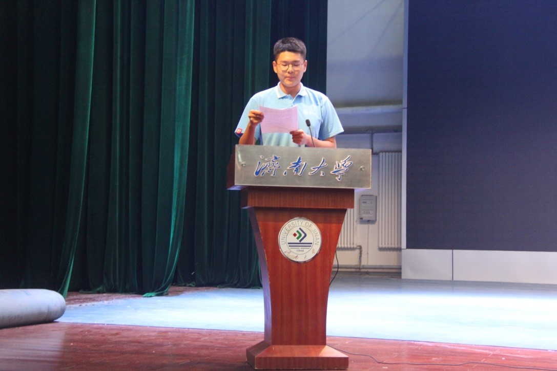 教师的教学风采,鼓励新生满怀热情,坚定信念,学好专业知识,以饱满的姿态迎接大学生活。16级学生代表韩欣宇和新生代表巫鹤阳相继发言,他们分别从大学积累的经验和对大学生活的规划两个不同的角度切入,发表了大学与青春的畅想。
