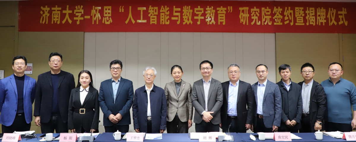 3月14日上午,济南大学-山东怀思“人工智能与数字教育”研究院签约暨揭牌仪式在济南举行。济南市科协副主席胡辉、中国电子劳动学会校企合作促进会副会长王世忠、中宏网山东CEO曲宏民、山东怀思人工智能科技有限公司(以下简称“山东怀思”)总经理杨阳出席仪式,济南大学副校长黄加栋,科技处、教务处、肉视频
