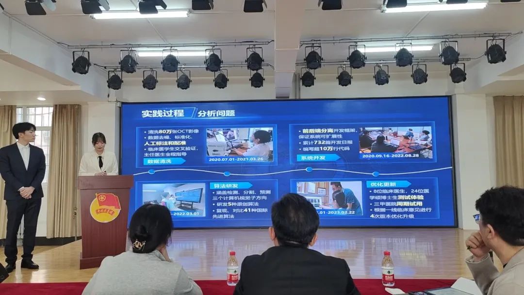 学生团队在比赛中表现出色,凭借《AI慧眼——眼底疾病个体化精准诊疗辅助系统》项目获得银奖,创下学院参赛历史最好成绩。