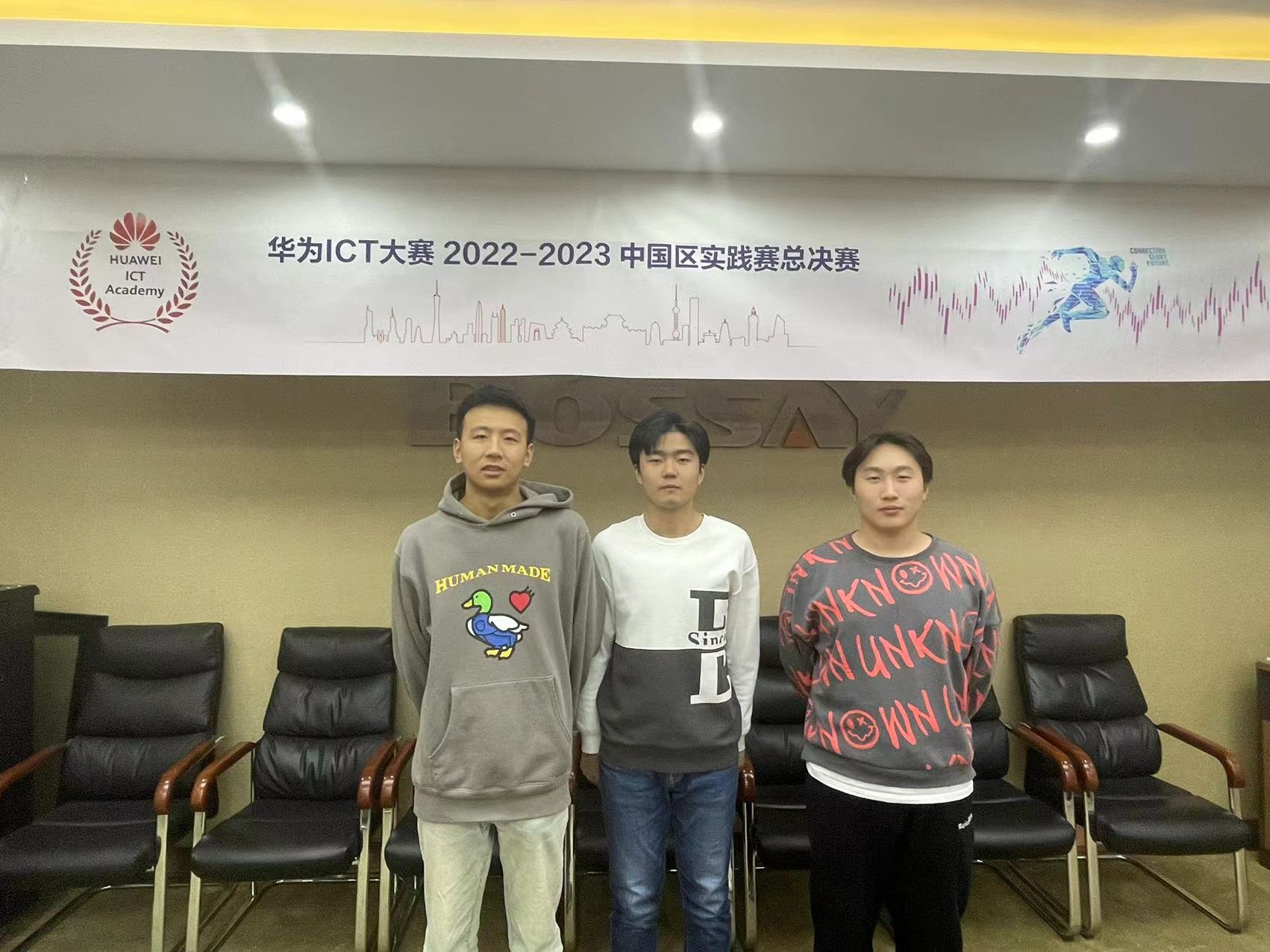 本届华为ICT大赛自2022年11月省赛开赛以来,面对疫情的余音、管控的长持状态,学院师生克服重重困难,积极参加赛事主办方提供的线上宣讲、培训、辅导课程,指导教师利用课余时间为学生进行指导、答疑,经过师生的共同努力和积极备赛,史鉴浩、孙培宇、刘安泰三位同学组成的队伍从全省队伍中脱颖而出,荣获山东省网络赛道本科组第一名的成绩,并代表山东省本科网络赛道参加全国总决赛。全国总决赛共吸引了来自全国1200余所院校的7万余名学生参赛,肉视频