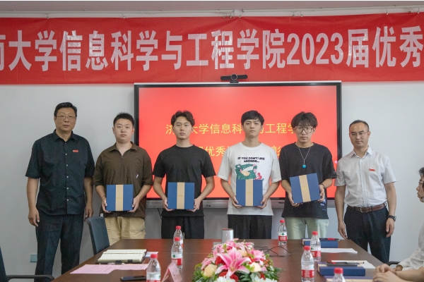 李超代表学院对受表彰的优秀毕业生表示热烈的祝贺,对他们为学院发展作出的贡献表示感谢,并对毕业生提出三点希望:一是坚定理想信念,牢记初心使命,加强党性修养,强化廉洁自律,全面学习领会习近平新时代中国特色社会主义思想的科学体系,牢牢把握“学思想、强党性、重实践、建新功”的总要求,做实“六个必须坚持”,努力成长为堪当民族复兴重任的时代新人;二是要志存高远,脚踏实地,努力提高自己的知识储备和专业技能,坚持守正创新,勇于担当,将报国之志落实到具体行动上来,用自己的“奋斗之笔”书写信息技术行业的新时代荣光;三是希望毕业生走出校门后,继续关心学校的建设和发展,支持母校、宣传母校,做母校忠诚的、热心的校友,为学校、学院更加美好的明天献计献策,添砖加瓦,为信息学院增光添彩。