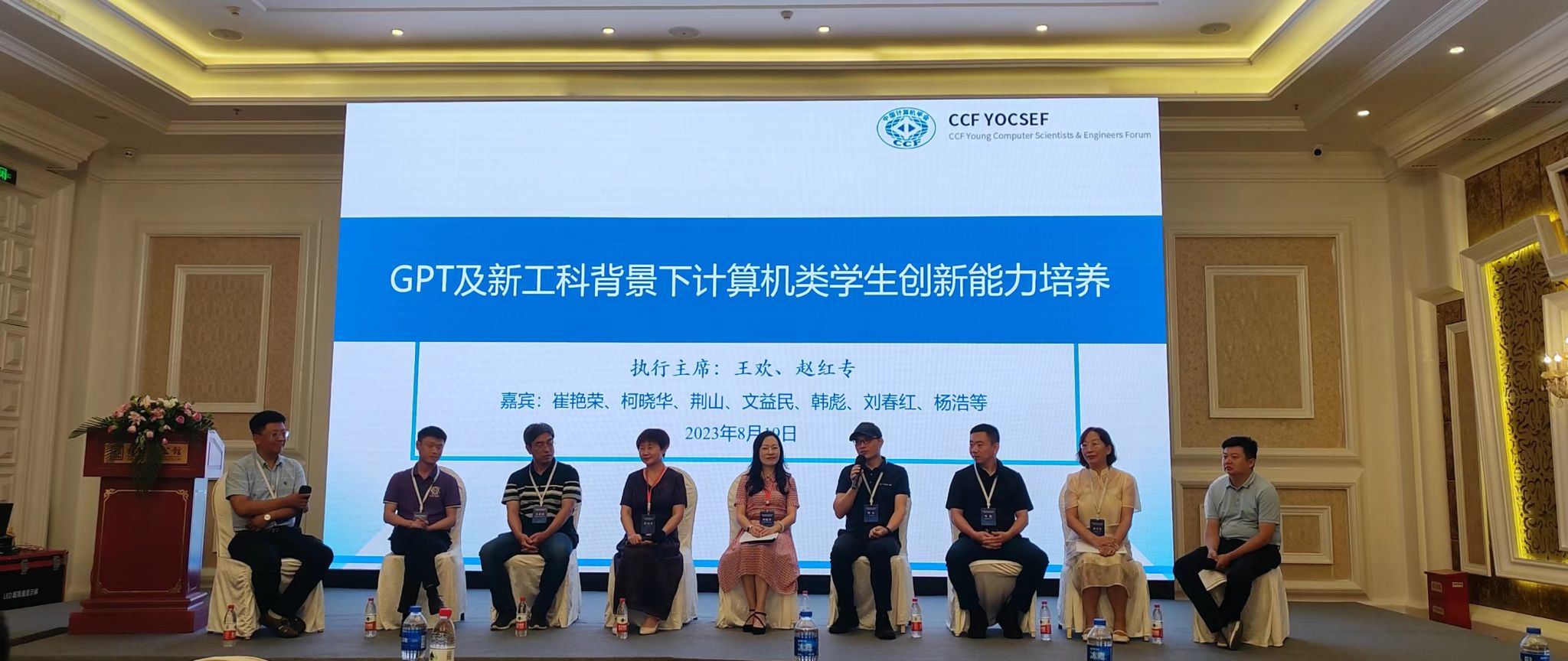 会议邀请了北京工业大学蒋宗礼教授、中国教育发展战略学会副会长兼人才发展专业委员会理事长李志民教授、东北大学王兴伟教授、清华大学崔勇教授、武汉大学吴黎兵教授等专家做特邀报告,荆山副院长受邀做了题为“新工科背景下的地方高校计算机网络课程群建设”的大会报告,并参加了主题为“GPT及新工科背景下计算机类学生创新能力培养”的Panel环节。