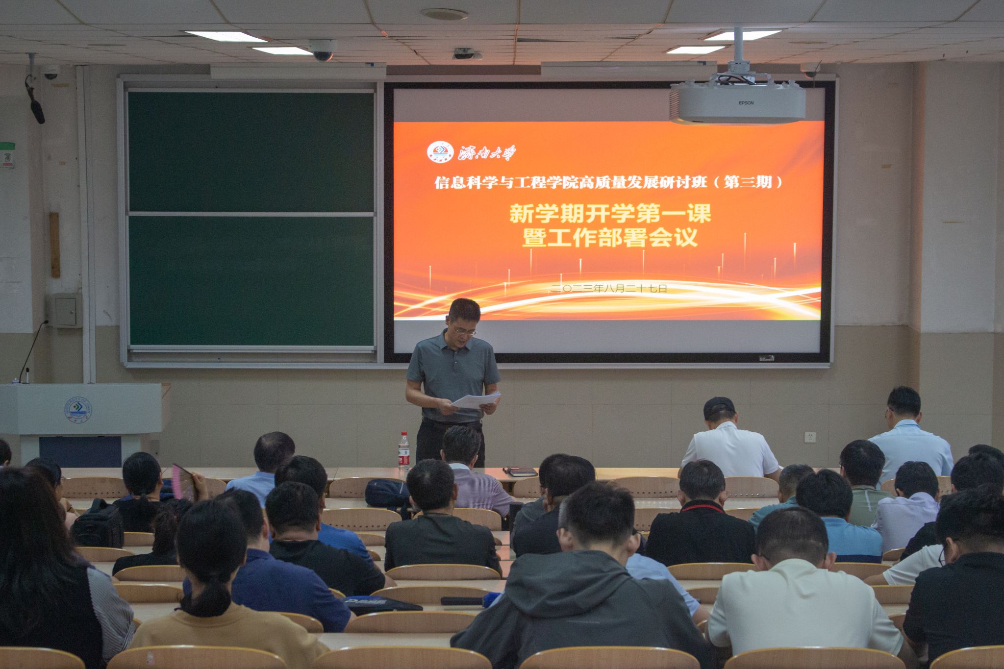 在11教5101召开新学期开学第一课暨新学期工作部署会。学院党政领导班子成员、全体教职员工参加会议,会议由学院党委书记夏卫东主持。