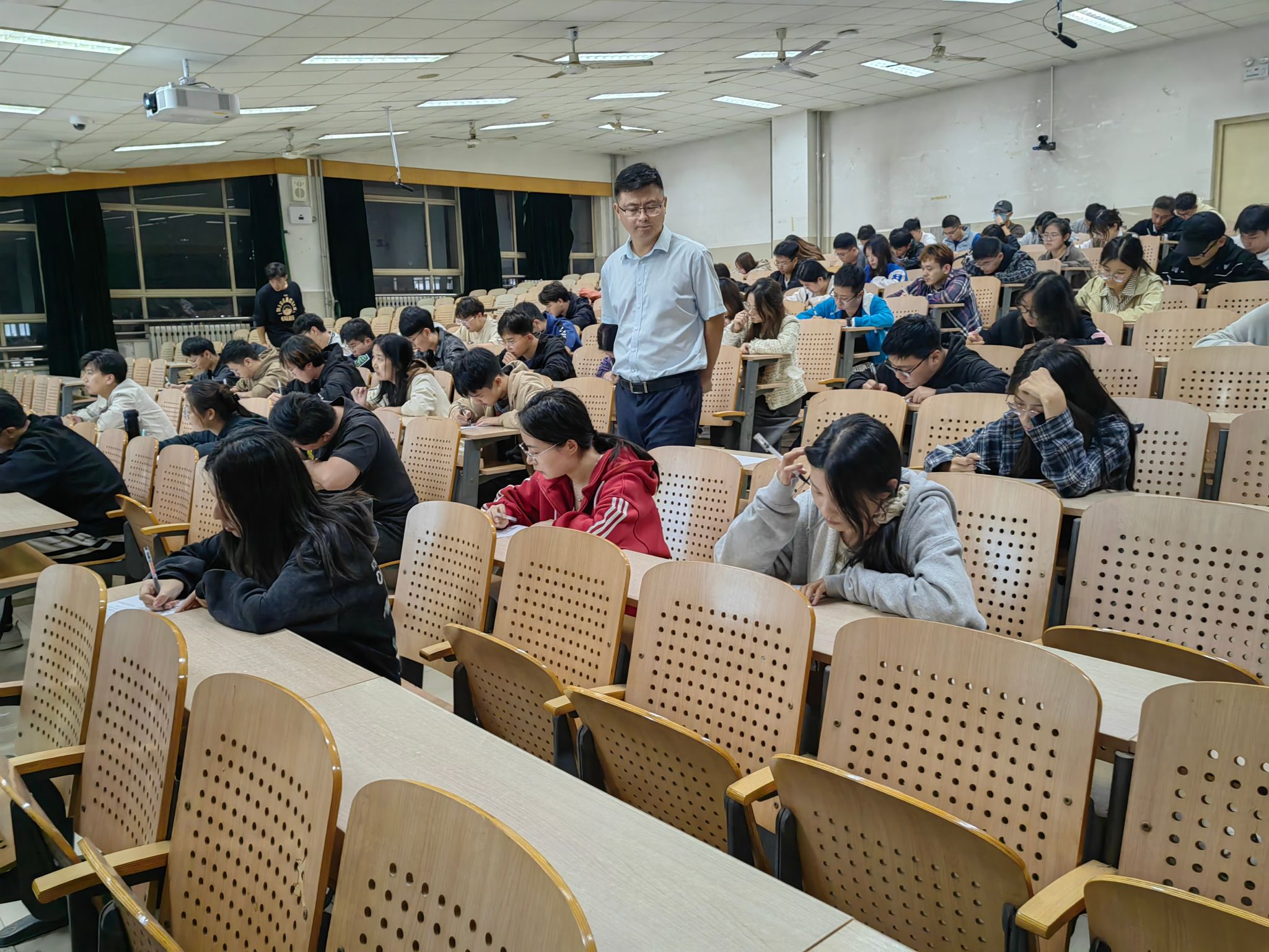 党委在第十一教学楼组织本学期符合党组织发展基本条件的入党积极分子进行理论知识测试,学院党委书记夏卫东,党委副书记、副院长郝伟,各学生党支部书记出席活动,379名符合发展条件的积极分子参加理论知识测试。