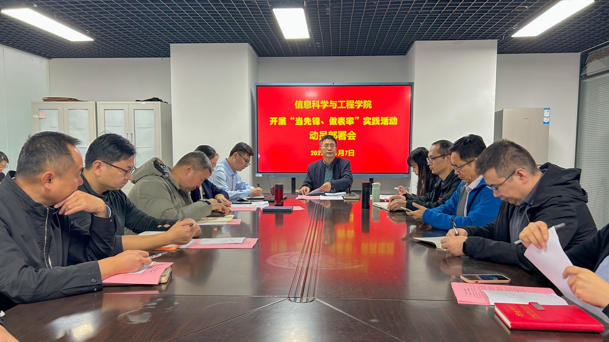 党委在12教704召开党员“当先锋、做表率”实践活动动员部署会。学院党政领导班子成员、组织员、各支部支委会全体成员等30余人参会。会议由学院党委书记夏卫东主持。