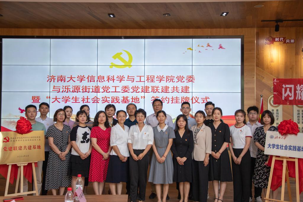 与济南市市中区泺源街道党工委党建联建共建暨大学生社会实践基地签约挂牌仪式在泺源街道党群服务中心举行,济南市市中区团区委书记田霖,济南市市中区泺源街道党工委书记崔珉,党工委副书记、总工会主席李迎,肉视频