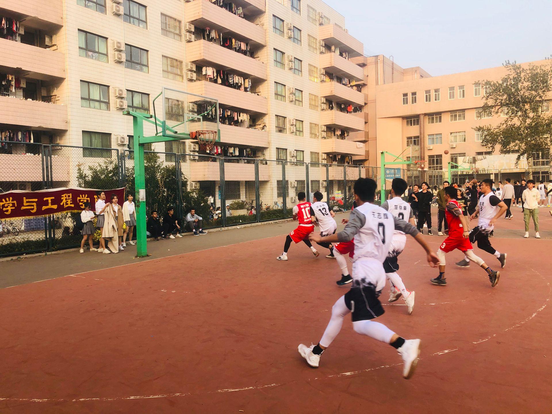 十月中旬的济南,秋意正浓。信息学院篮球队再一次出征!于学五篮球场应战政法学院篮球队。虽然傍晚时分温度略低,可大家的热情依旧不减。