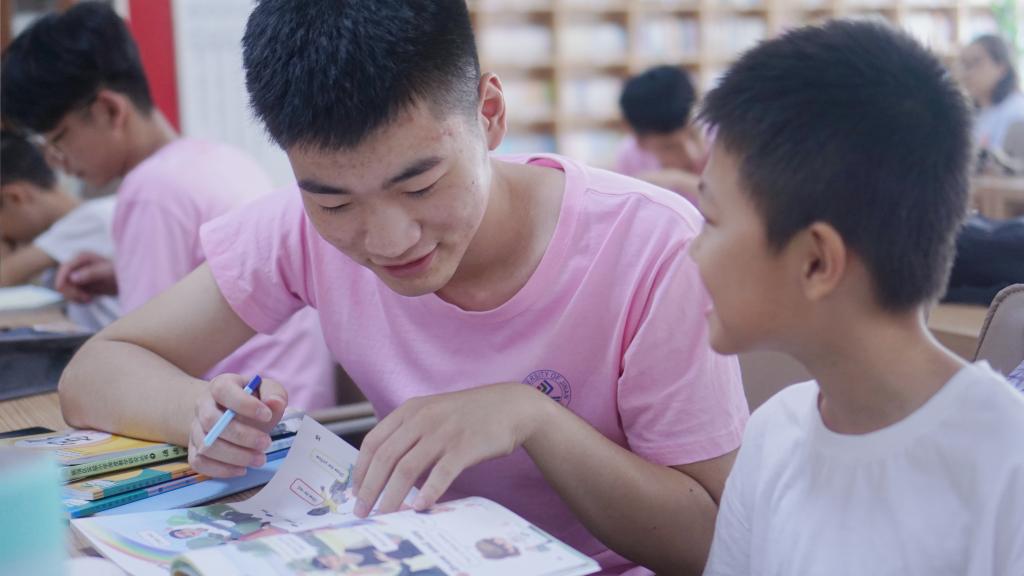当再次回到了稷下街道党群服务中心,我们开始了愉快的室内游戏课,小朋友们被分成了两队,紧张激烈的游戏就此展开,只见小朋友手拿一个球,小心谨慎的瞄准,然后迅速出手,球进框了!并为他的队伍赢得了宝贵的一分。快乐的时光总是短暂的,欢快的室内游戏很快便告一段落。最后,我们开始了暑假作业辅导,先前活泼可爱的小朋友们学习起来是那么认真,时不时向我们询问问题,我们也会认真仔细的解答他们的疑惑。正巧有位小朋友的家长也在现场,她在我们辅导时不断“实时转播”到家长群里,学生们虚心请教,我们认真的传授的样子也受到了家长们的一致好评。