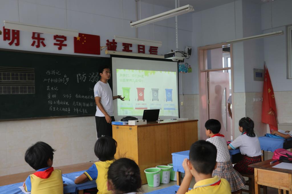 现如今,垃圾堆积如山,外卖的层层餐盒、快递的过度包装,城市已经被垃圾围城,解决垃圾处理问题刻不容缓。今天,我们“青春视角 美丽中国”济南大学信息学院暑期社会实践团今天来到了日照市五莲县槎河村槎河小学,向小朋友们讲解垃圾分类知识,希望在他们纯洁的心灵里种下垃圾分类、保护环境、节约资源的种子。我们先讲解了垃圾分类的现状和必要性,小朋友们都表现出了浓厚的兴趣。之后我们举例了垃圾的类别,告诉小朋友们如何分辨各种垃圾,然后我们拿出事先准备好的海洋球,海洋球上贴好了垃圾的名称代表各种垃圾,让小朋友们尝试着将海洋球投入不同的垃圾桶,模拟垃圾分类,小朋友们都圆满的完成啦,我们也感到非常自豪。