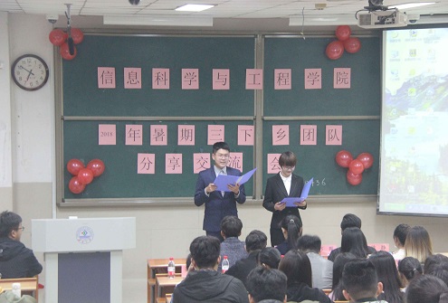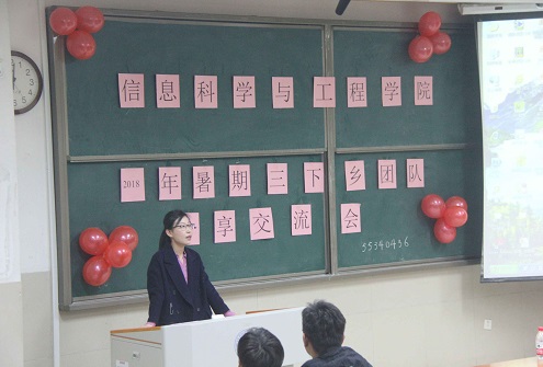 团建部组织的2018年暑期“三下乡”团队分享交流会在11教1101如期举行。信息学院团委书记崔艺馨老师,信息学院学生会主席团及各实践团队队长出席了本次会议。