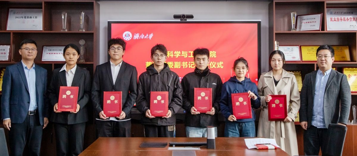 根据共青团工作相关规定,结合学院工作实际,经过个人申报、资格审查、面试等环节,学院共选拔刘乾润等6名学生担任团委学生兼职副书记。会上,学院党委副书记、副院长郝伟和副院长杨晓晖分别为受聘同学颁发聘书。