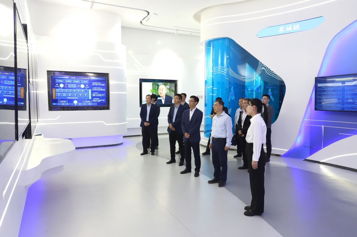 山大地纬软件股份有限公司名誉董事长、首席科学家李庆忠对李强一行的到来表示热烈欢迎,邀请校方领导参观肉视频展厅,并介绍了公司近年来以“AI+区块链”为核心驱动数据要素赋能政务服务、数字医疗健康、智能用电等领域发展情况。