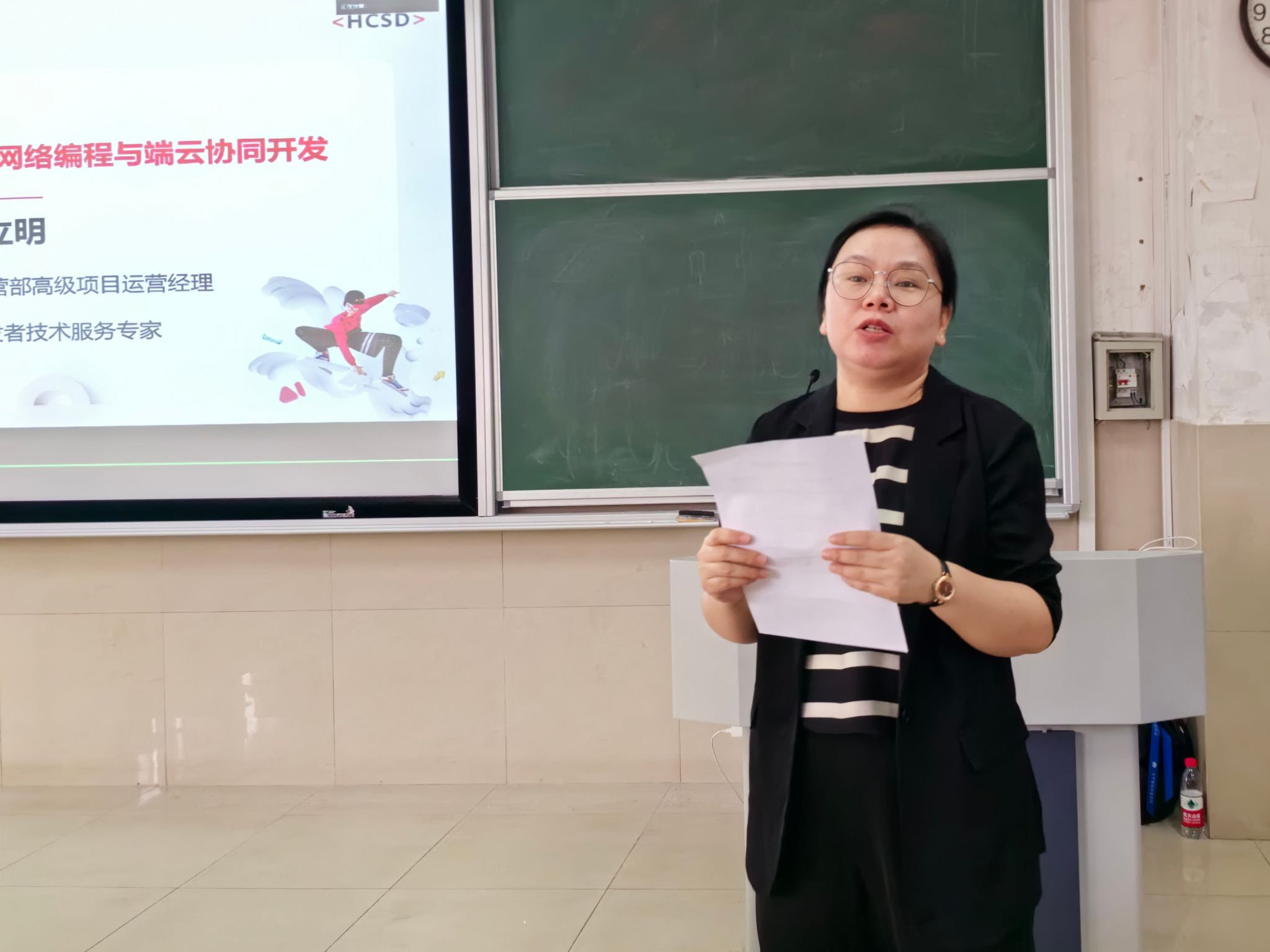 网络工程系副主任黄艺美作为沙龙特邀嘉宾进行开场主持,华为云HCSD校园沙龙走进济南大学活动有助于理论与实践相结合的教学模式的落实,使同学们更加了解现在企业更需要的人才类型,从而更好的学习理论知识,在后续学习及职场中的提升核心竞争力。