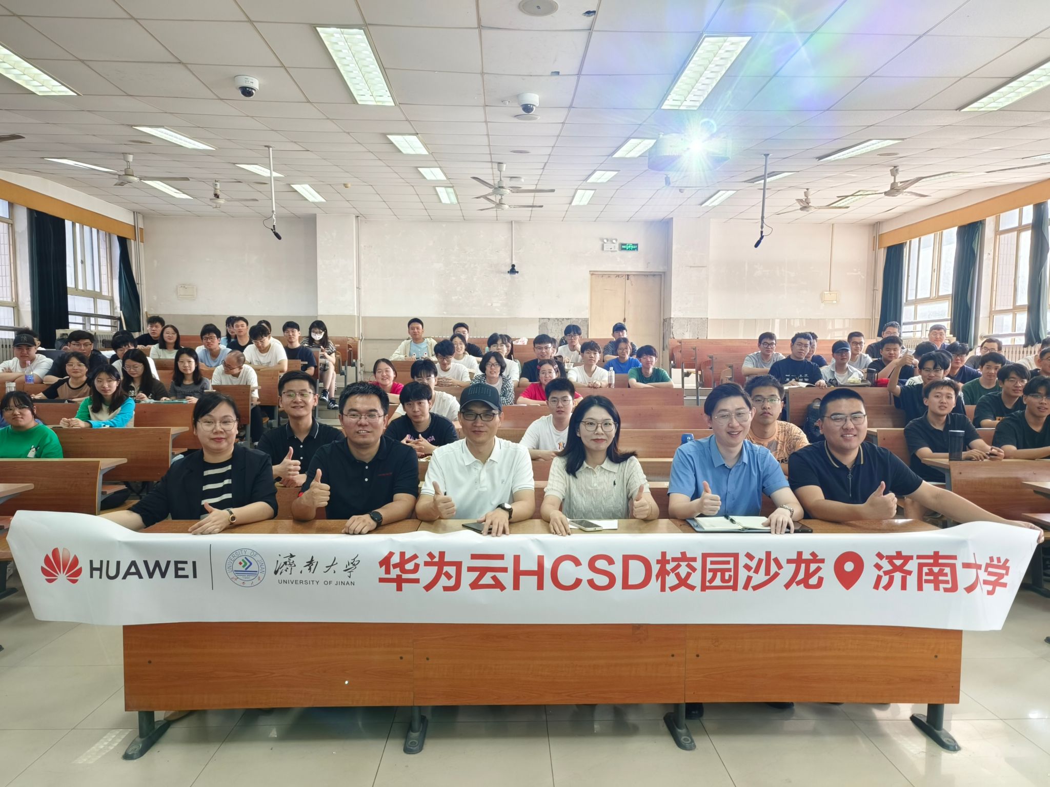 2023年9月15日,华为云HCSD校园沙龙活动在济南大学举行,本次活动由华为云计算技术有限公司主办,济南大学与华为济南创新中心共同承办,旨在通过知识分享、技术交流、动手实践,帮助高校开发者学习云领域知识,助力数字人才输出,共建优良高校生态。来自济南大学的120余位师生参与此次活动。